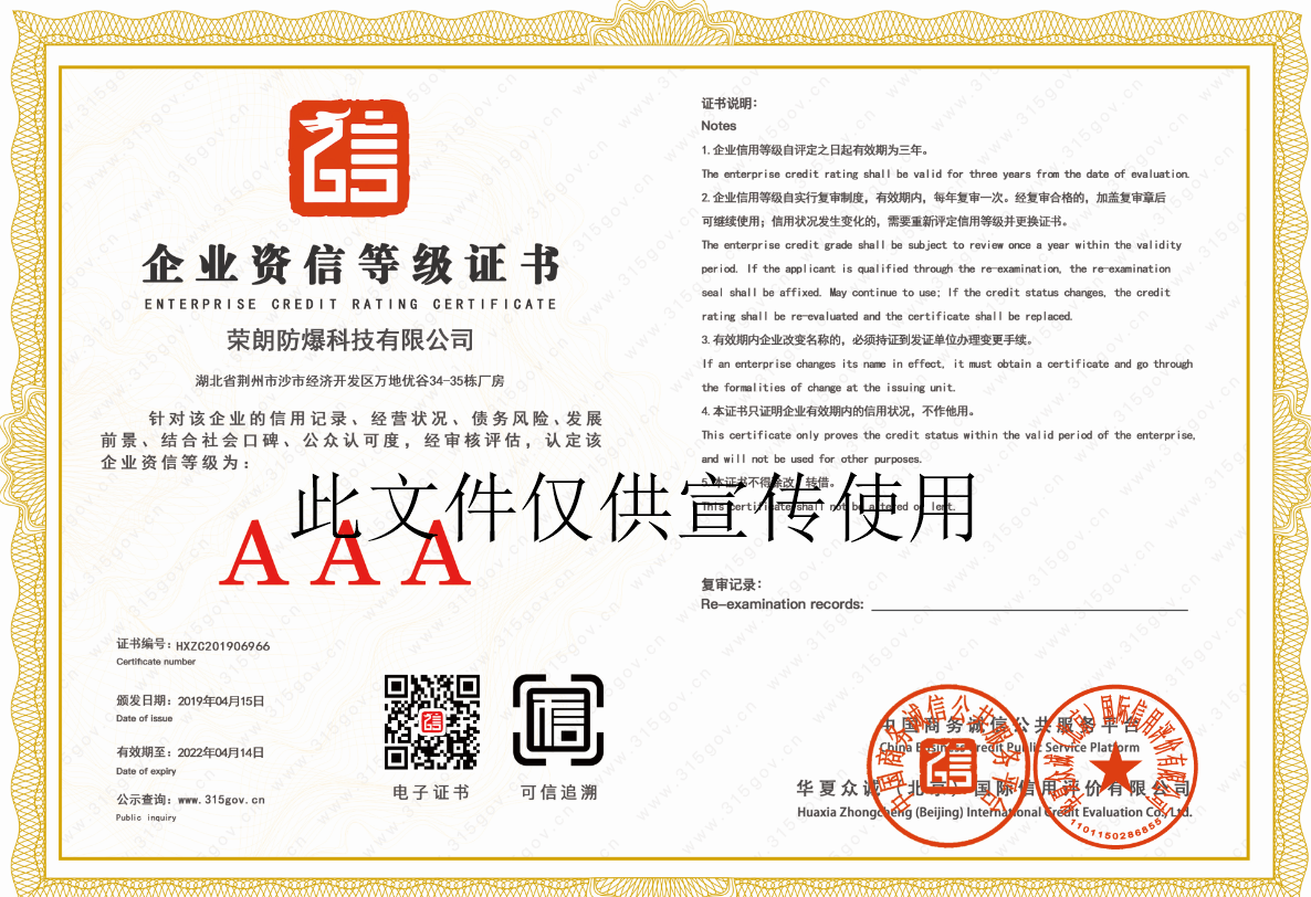 企業資質等級證書 發布時間:2020-04-30T08:15:28 內容來源:LED防爆燈 企業資質等級證書企業資質等級證書-www.www.suyibang.com.cn 企業信用等級證書 中國國家強制性產品認證CCC證書