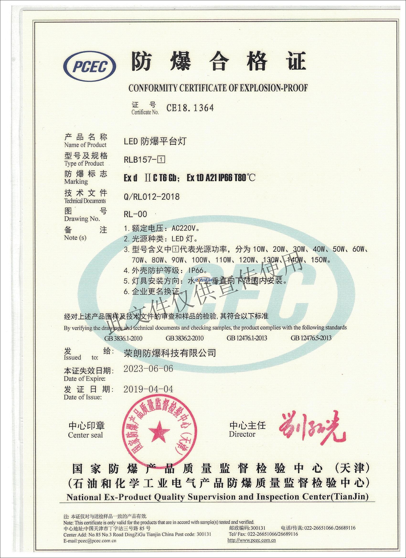 RLB157 LED防爆平臺燈防爆證書 發布時間:2020-04-30T08:36:58 內容來源:LED防爆燈 RLB157 LED防爆平臺燈防爆證書RLB157 LED防爆平臺燈防爆證書-http://www.www.suyibang.com.cn/a/p/51.html RLB156 LED防爆泛光燈防爆證書 LED防爆燈具防腐檢測報告