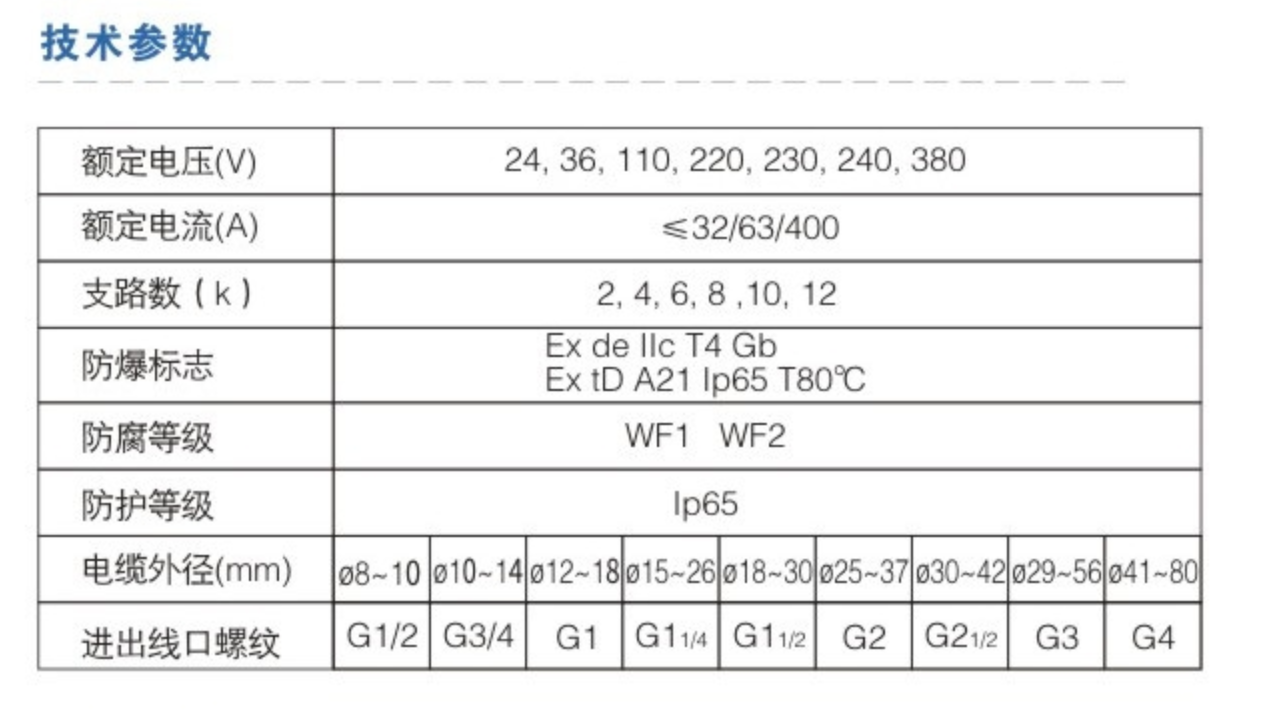 【簡介】:榮朗防爆科技有限公司防爆配電箱特點及參數:適用范圍: 適用于爆炸性氣體環境1區、2區; 適用于可燃性粉塵環境21區、22區; 適用于IIA、IIB、IIC級爆炸性氣...